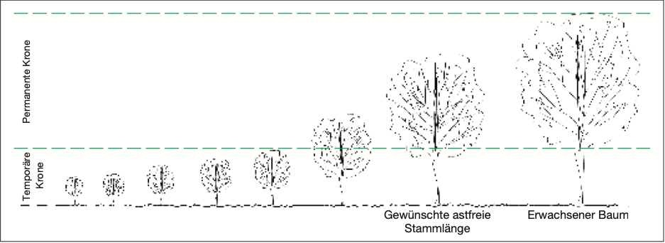 Jungbaumschnitt_Temporäre:Permanente_Krone ← Previous Next → Grafik zur Baumentwicklung Jungbaumschnitt, Aufbau- und Erziehungsschnitt, Baumpflege Hamburg und Seevetal