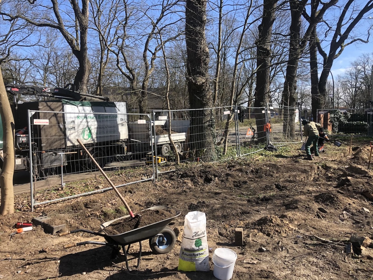 Bodenverbesserung für Eichen neben einer Baustelle